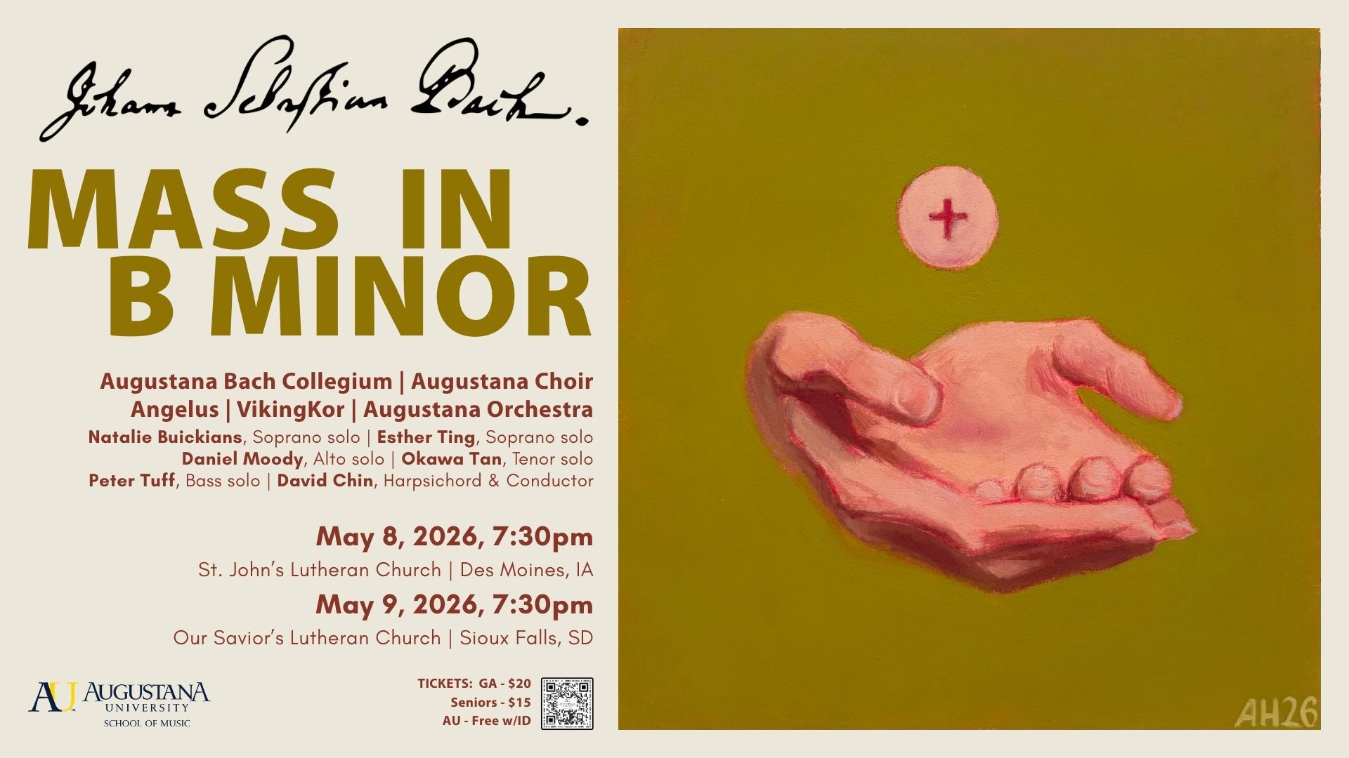 Johann Sebastian Bach ‘Mass in B minor, BWV 232’ Augustana Bach Collegium Dr. David Chin, Conductor Augustana Orchestra Dr. Chris Unger, Conductor Augustana Choir and VikingKor Dr. Russell Svenningsen, Conductor Angelus Natalie Campbell, Conductor Natalie Buickians, Soprano Esther Ting, Soprano Daniel Moody, Countertenor Okawa Tan, Tenor Peter Tuff, Baritone Ioana Galu, Concertmaster Dr. David Chin, [...]