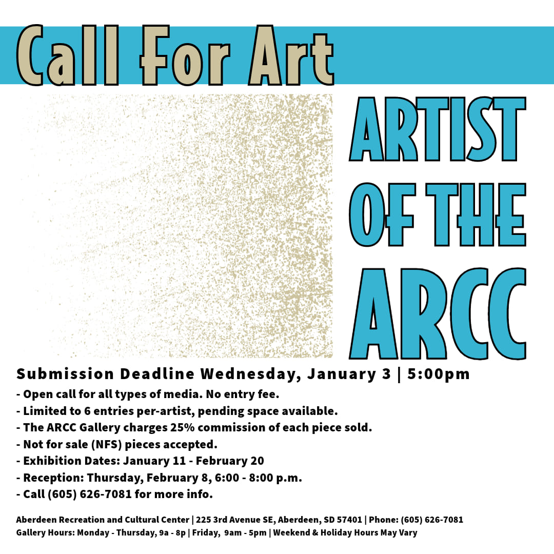 An open call for art for local Aberdeen and surrounding artists presented by and hosted at the Aberdeen Recreation and Cultural Center Gallery.