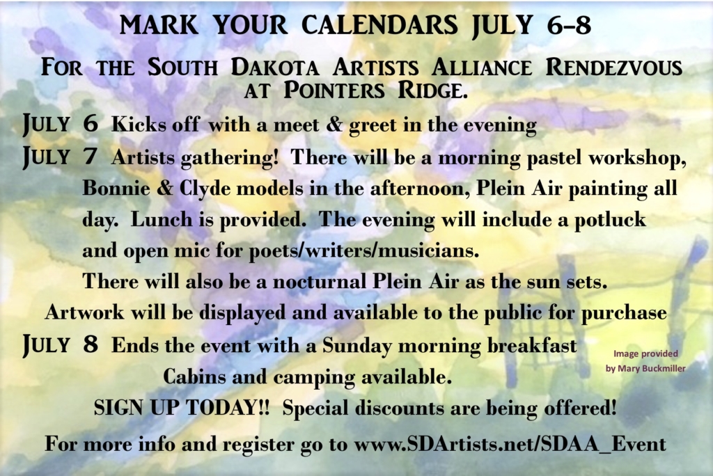 Call for artists – South Dakota Artists Alliance Rendezvous For more information & to register: http://www.sdartists.net/sdaa-rendezvous.html By Shari Kosel|2018-06-21T15:37:26-05:00June 21st, 2018| Share This Story, Choose Your Platform! FacebookXLinkedInPinterest