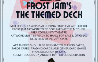 The Mitchell Area Arts presents Frost Jam’s The Themed Deck Art Show, hosted at the Mitchell Area Community Theatre. This exhibition is inspired by the creativity and imagination found in the world of cards. Inspiration can be by a classic deck of playing cards, tarot, gaming cards, or an artist’s own interpretation of suits, symbols, [...]